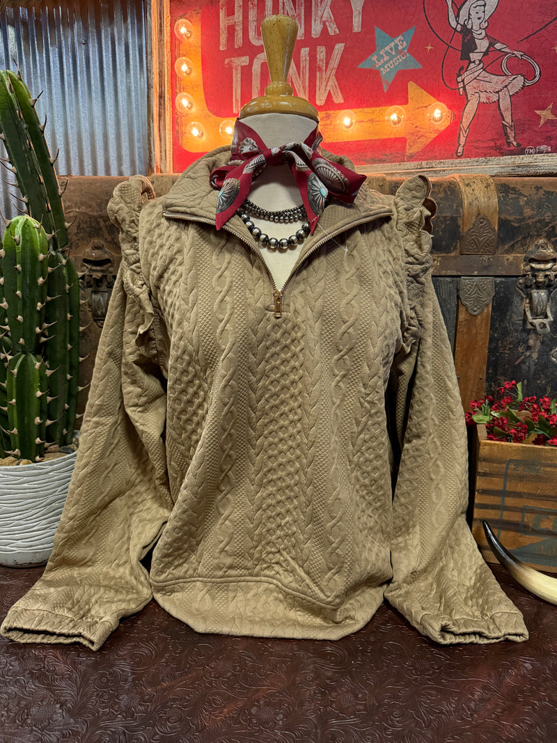 UM Taupe Ruffle Pullover