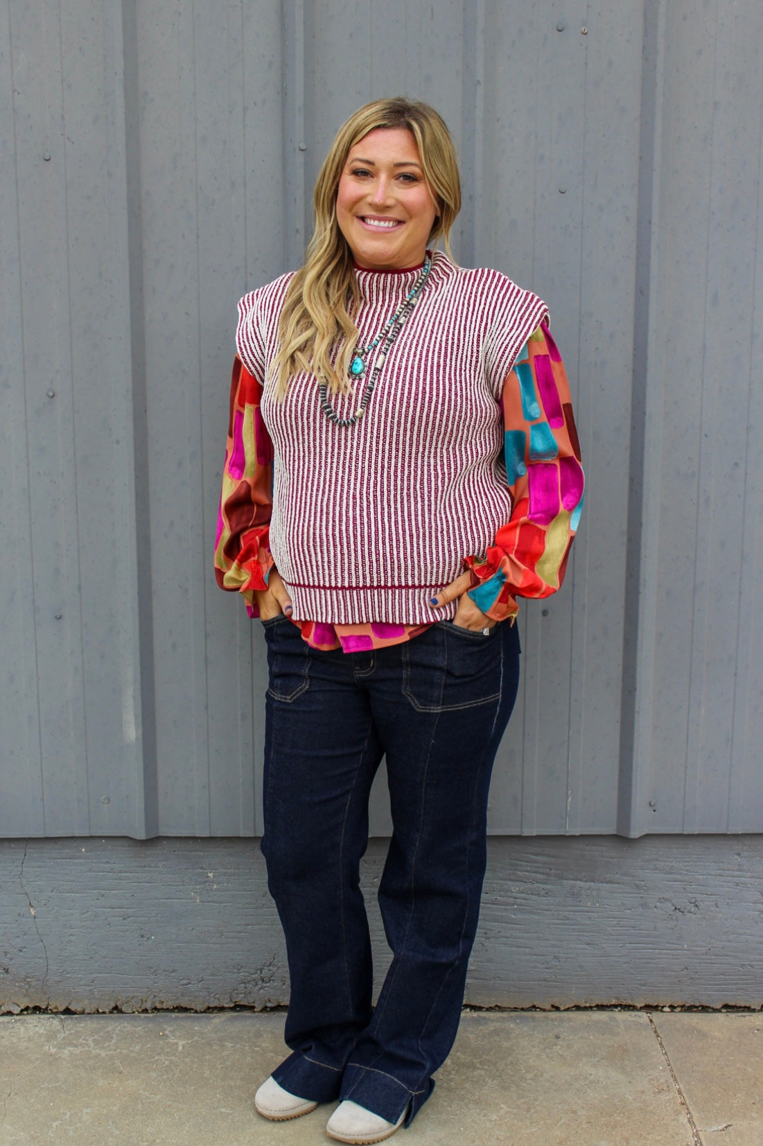 VJ Burgundy/White Sweater Vest